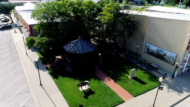 located downtown; has a beautiful gazebo and large mural depicting Caldwell and Cherokee Strip History; engraved Red Brick Memorial Walk